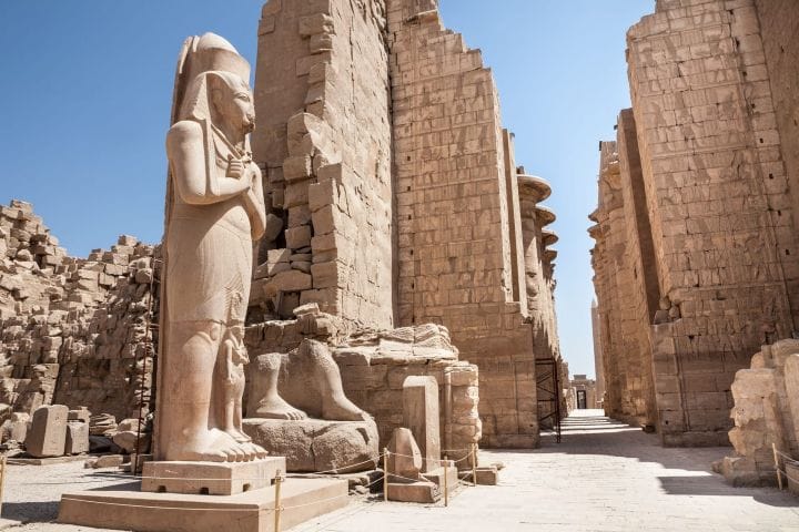 Your first day in Luxor should focus on the East Bank, where two of the city’s most impressive temples stand. Start your morning early at Karnak Temple, one of the most remarkable religious complexes ever built. Walking through the Great Hypostyle Hall is an unforgettable experience. Towering sandstone columns stretch high above you, creating what feels like a forest made of stone. Take your time wandering through the courtyards, past the Sacred Lake and the massive obelisks that once honored Egypt’s most powerful rulers. Plan to spend two to three hours here — Karnak is vast, and there’s a lot to take in.