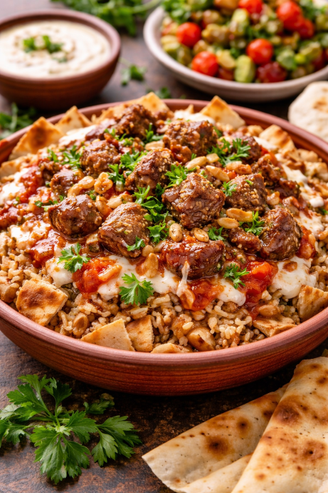 Traditionally eaten during holidays and celebrations, fattah is rich and indulgent.
